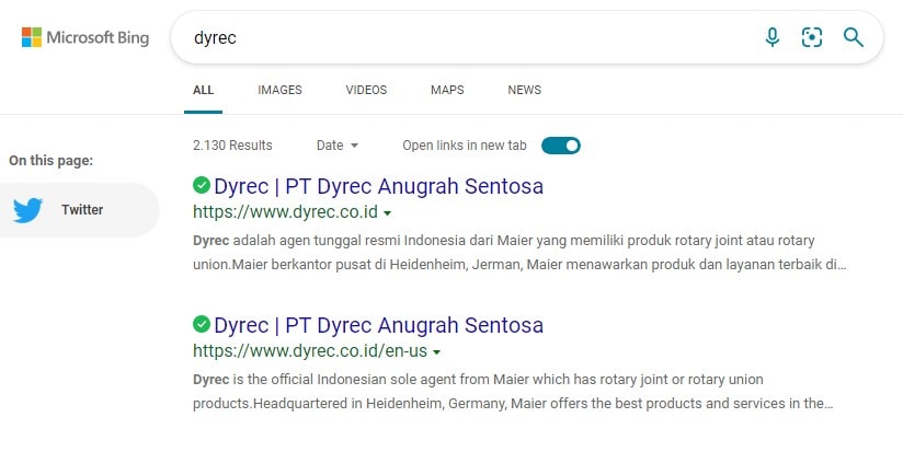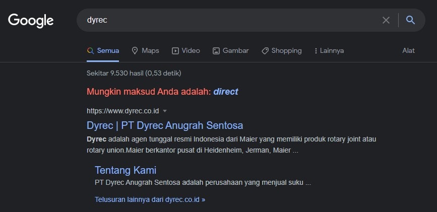 Dyrec wants their new website show up in Google search result when using their company name as keyword: “Dyrec”.