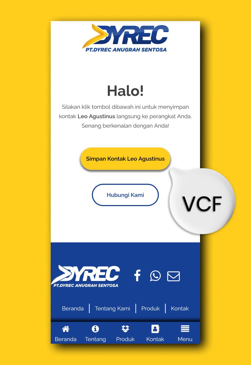 - Pretty link generator for vcf download which integrated to business card via QR Code