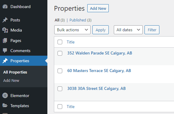 Then later in WordPress using Elementor and custom post type for property listing and custom field for the property’s details.